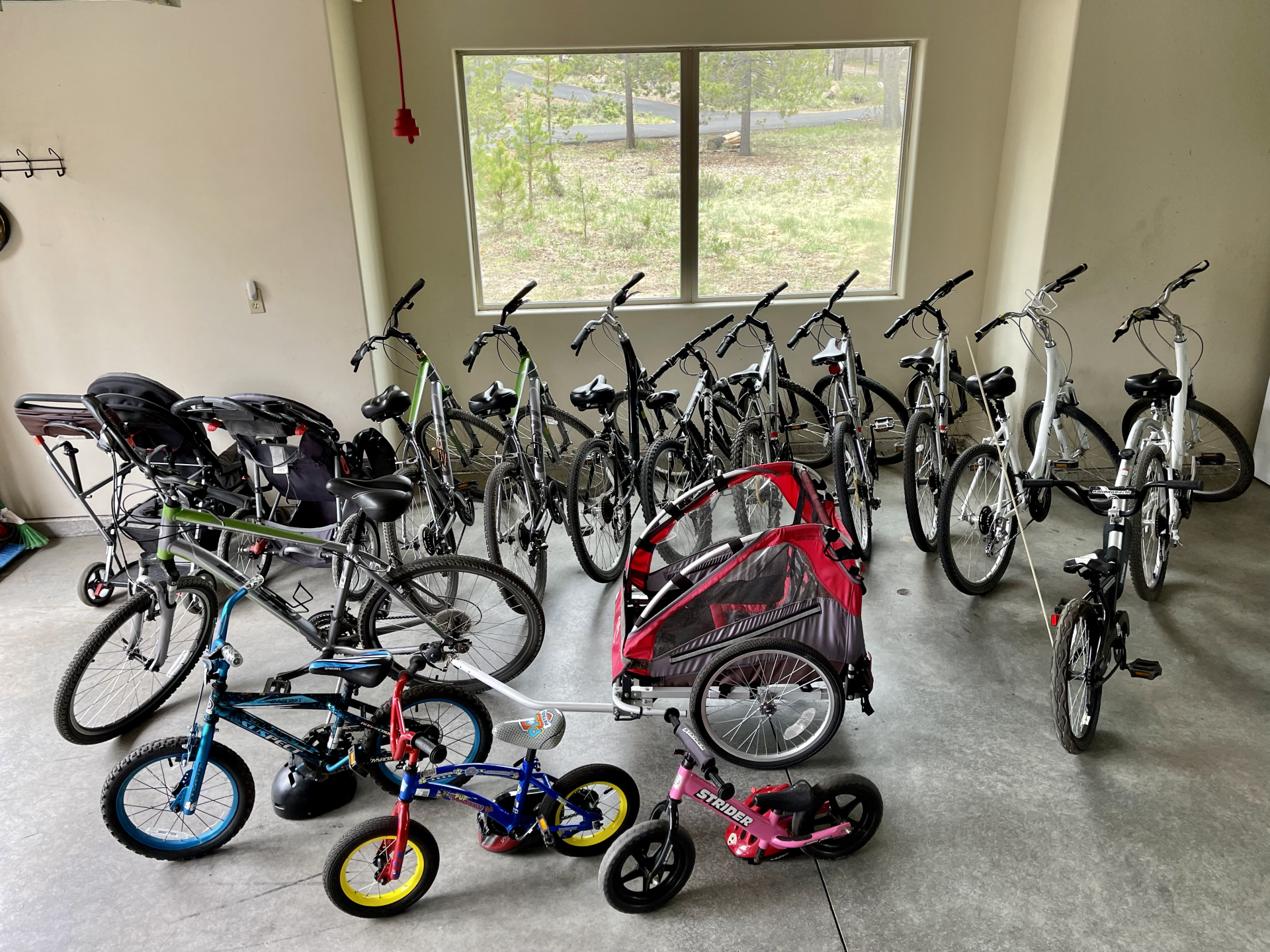 - 2 kids’ bike trailers (1 tag-a long, 1 dual seater)